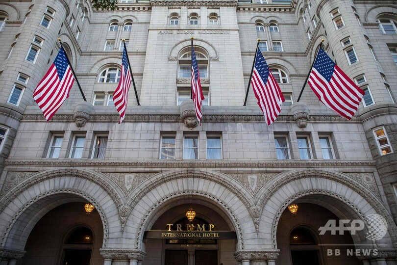 スシ・ナカザワが位置するのは、ホワイトハウスから数ブロック先のホテル。このホテルをめぐっては、トランプ氏が大統領としての立場を利用して訪米した外交官らに利用させて稼ごうとしているとして非難の声が上がっている。(c)AFP