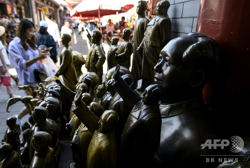 中国人の多くは、中華人民共和国の建国の父、毛沢東政権下の混沌(こんとん)とした血なまぐさい数十年のことを忘れてしまっているのかもしれない。だが、中国共産党の創立が宣言されてから70年がたつ今、毛をモチーフにした記念品が中国全土の店舗や露店で販売されている。(c)AFP
