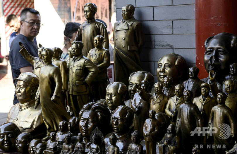 中国人の多くは、中華人民共和国の建国の父、毛沢東政権下の混沌(こんとん)とした血なまぐさい数十年のことを忘れてしまっているのかもしれない。だが、中国共産党の創立が宣言されてから70年がたつ今、毛をモチーフにした記念品が中国全土の店舗や露店で販売されている。(c)AFP