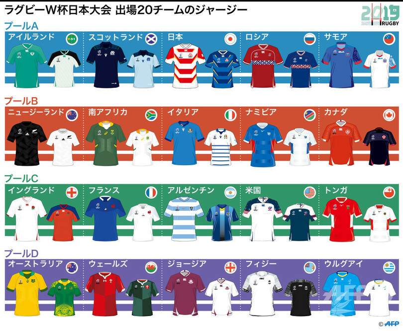 スポーツ ラグビー 写真特集 【写真特集】ラグビーW杯日本大会、出場チームのジャージー 2019年10月15日 16:57 発信地:その他 このニュースをシェア 画像作成中 この写真にはショッキングな表現、または18歳以上の年齢制限の対象となる内容が含まれます。ご覧になる場合にはご了承の上、クリックしてください。 この画像を見る ❯ {{photo.ind}}/30 画像作成中 {{photo.ind}}/30 画像作成中 ! 【10月15日 AFP】現在開催されているラグビーW杯日本大会(Rugby World Cup 2019)で各代表チームが着用しているジャージーの写真をまとめた。(c)AFP ラグビー 一覧へ> メディア・報道関係・法人の方向け 写真・動画 購入のお問合せ>