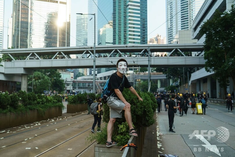香港デモに「ガイ・フォークス」の仮面 新たなシンボルに