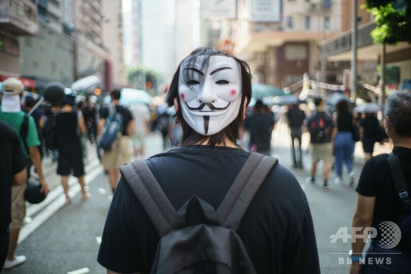 香港デモに「ガイ・フォークス」の仮面 新たなシンボルに