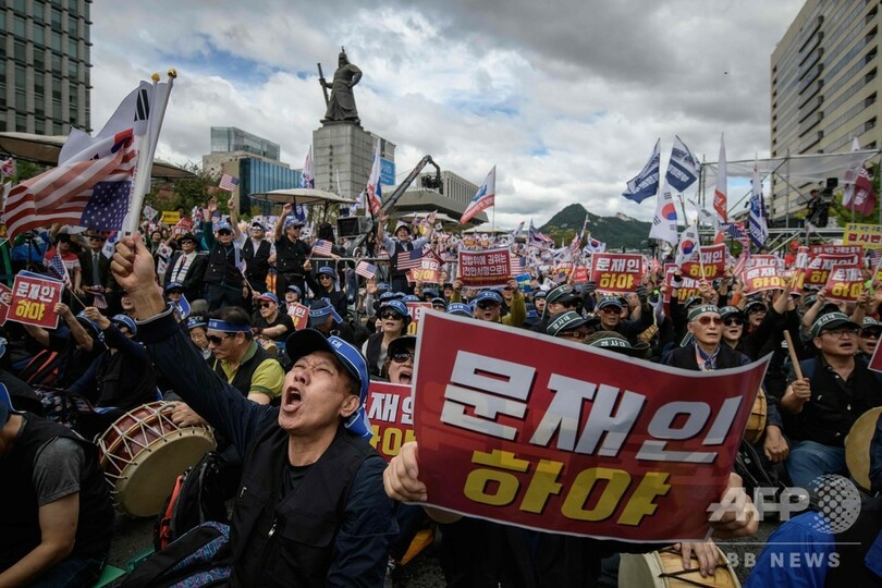【10月3日 AFP】韓国・ソウルで3日、文在寅(ムン・ジェイン、Moon Jae-in)大統領に退陣を要求するデモが開かれた。
