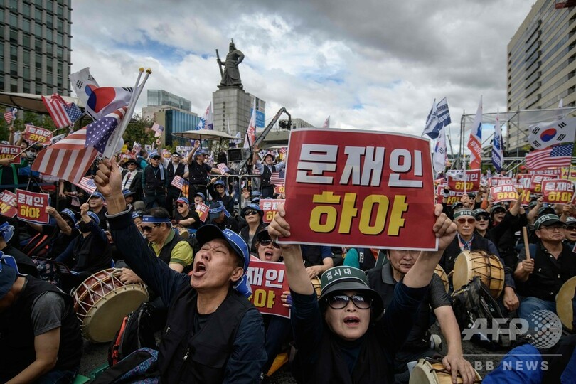 【10月3日 AFP】韓国・ソウルで3日、文在寅(ムン・ジェイン、Moon Jae-in)大統領に退陣を要求するデモが開かれた。