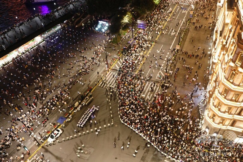 上海バンドに大勢の人、瞬間的に7.1万人 「三角形の島」で誘導