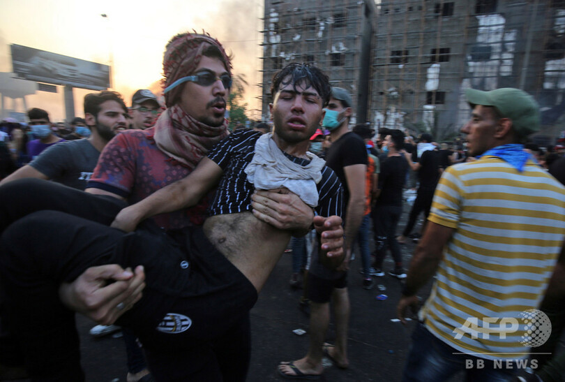 抗議デモは首都バグダッドで1日に始まった後、イスラム教シーア派(Shiite)が多数を占める南部の各都市にも拡大。治安部隊が実弾や催涙ガスを使用する事態となっている。