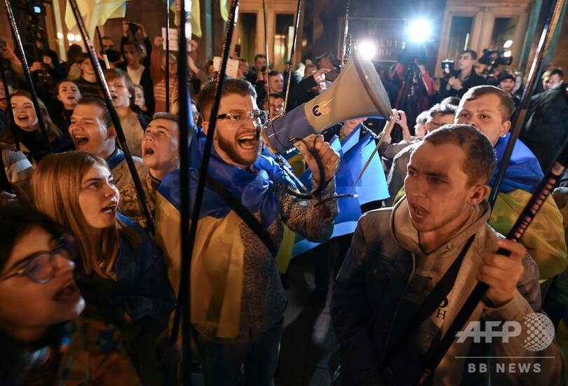 【10月4日 AFP】ウクライナ東部で2014年から続く紛争をめぐり、ウクライナ政府と親ロシアの分離派、ロシア政府の代表が今週、和平案に基本合意した。親ロシア派が実効支配する東部地域に「特別な地位」を付与するとの内容に、首都キエフでは抗議デモが発生。ウォロディミル・ゼレンスキー(Volodymyr Zelensky)大統領(41)は3日、市民に平静を呼び掛けた。