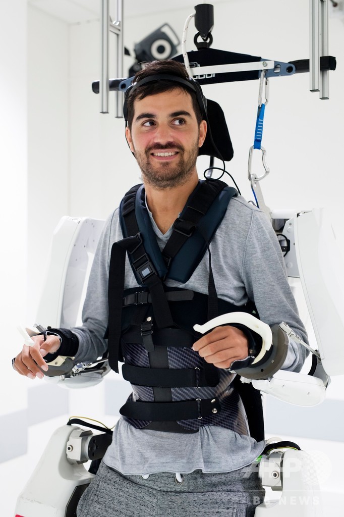 【10月4日 AFP】事故で肩から下がまひしたフランス人男性が、脳信号によって制御するパワードスーツを装着し再び歩けるようになった。研究者らによると、四肢まひ患者に希望を与える大きな前進と言えるという。