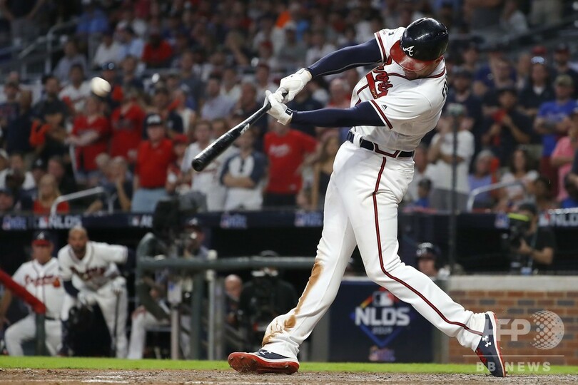 ブレーブスは9回裏、フレディ・フリーマン(Freddie Freeman)とロナルド・アクーニャJr.(Ronald Acuna Jr.)に本塁打が生まれ1点差に迫るも、反撃は及ばなかった。(c)AFP
