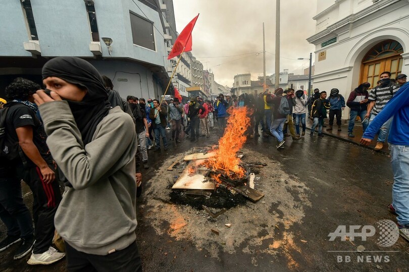 中央官庁が集まる首都キトの歴史地区では、デモ隊が石や火炎瓶を投げ、警察が催涙弾で応酬。一連の衝突で複数の道路が通行できなくなっているほか、各地で公共交通機関が運行を停止した。