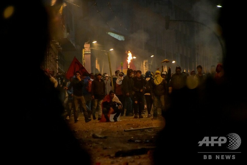 中央官庁が集まる首都キトの歴史地区では、デモ隊が石や火炎瓶を投げ、警察が催涙弾で応酬。一連の衝突で複数の道路が通行できなくなっているほか、各地で公共交通機関が運行を停止した。