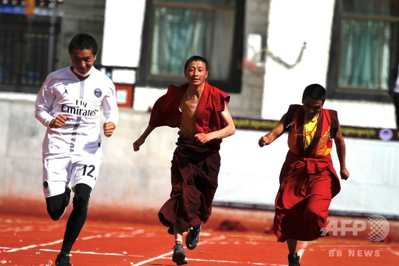 4×100メートルのリレーに参加した同学院の副院長で大経師(高位の教員)である扎西堅参さんは「運動会では多くの面白い競技を選んだ。学生にはストレスを発散し、健康な学校生活を過ごしてもらいたい」と語った。(c)CNS/JCM/AFPBB News