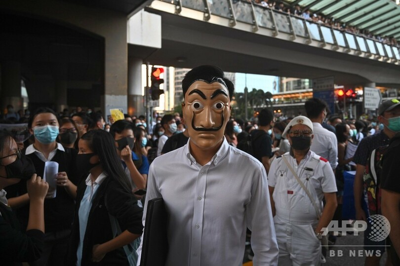 数十人の抗議デモ参加者らは、大手国際企業が多く集まる中環(セントラル、Central)地区で、プラスチック製の柵や木製のパレット、三角コーンなどを積み上げた。最大のバリケードの後方の道路には、マスク姿のデモ参加者ら数千人がとどまっている。