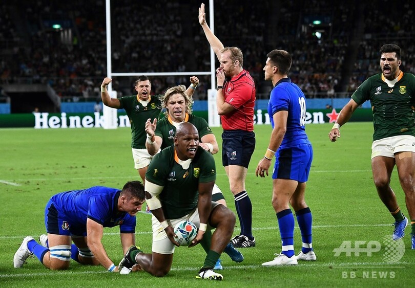【10月4日 AFP】ラグビーW杯日本大会(Rugby World Cup 2019)は4日、プールBの試合が行われ、南アフリカはチェスリン・コルビ(Cheslin Kolbe)が2トライを記録する素晴らしい活躍をみせ、退場者を出して数的不利となったイタリアを49-3で退け、準々決勝進出に一歩前進した。
