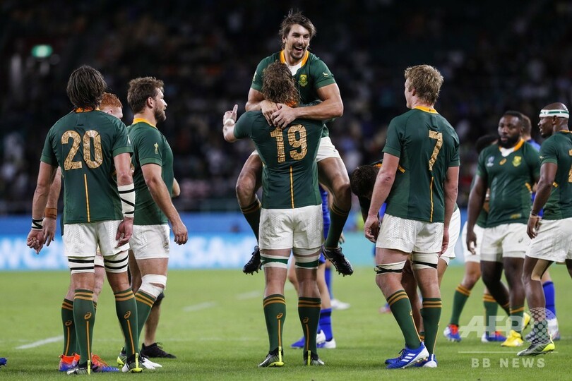 一方、イタリアは12日に豊田スタジアム(Toyota Stadium)で王者ニュージーランドとの大一番を迎えるため、南アフリカは次戦でカナダに勝利すれば、20日に東京スタジアム(Tokyo Stadium)で行われるプールA1位との準々決勝進出が濃厚となる。(c)AFP/Luke PHILLIPS
