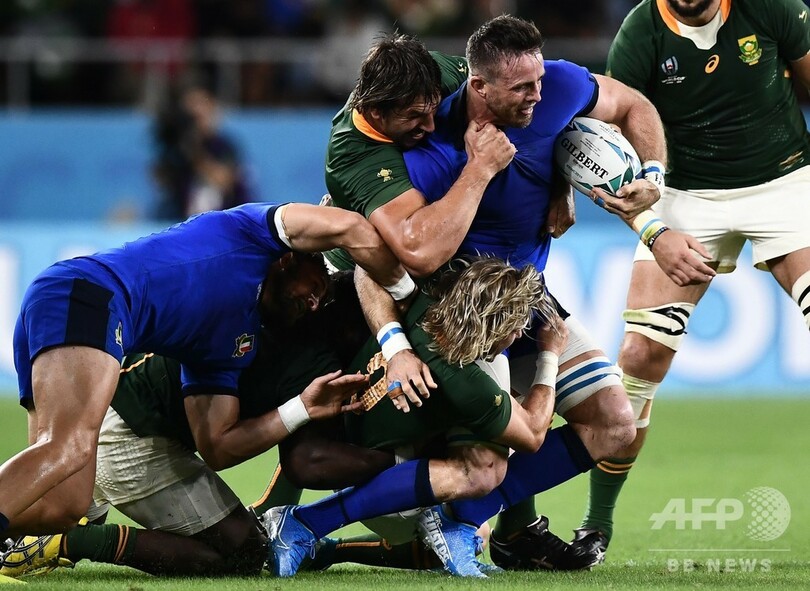 一方、イタリアは12日に豊田スタジアム(Toyota Stadium)で王者ニュージーランドとの大一番を迎えるため、南アフリカは次戦でカナダに勝利すれば、20日に東京スタジアム(Tokyo Stadium)で行われるプールA1位との準々決勝進出が濃厚となる。(c)AFP/Luke PHILLIPS