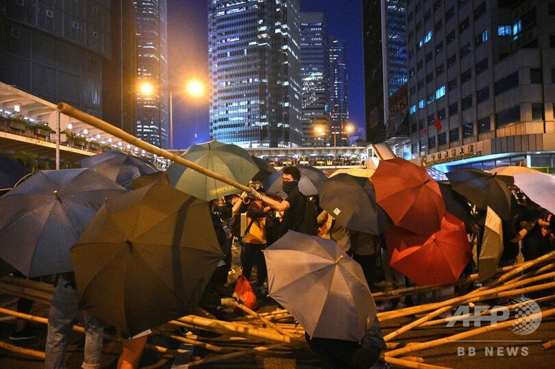 【10月5日 AFP】(更新)香港で5日、抗議デモ参加者の覆面を禁止する新法が施行された。同市では新法の発表直後から各地でデモが行われ、警官隊との衝突に発展。覆面禁止は同市で数か月にわたり続く抗議行動の抑制が目的だが、デモ側は新法の断固拒否を宣言している。