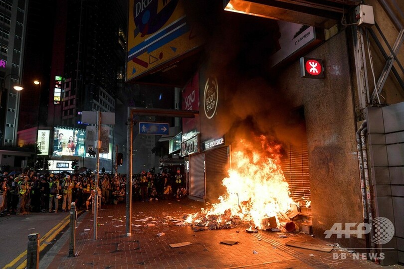 市内ではその後、衝突が夜通しで発生。デモ隊は道路にバリケードを築き、地下鉄の駅で破壊行為に及んだほか、路上に火を放ち、親中派の商店を損壊した。警察はデモ隊を解散させるため、複数の場所で催涙ガスを使用した。