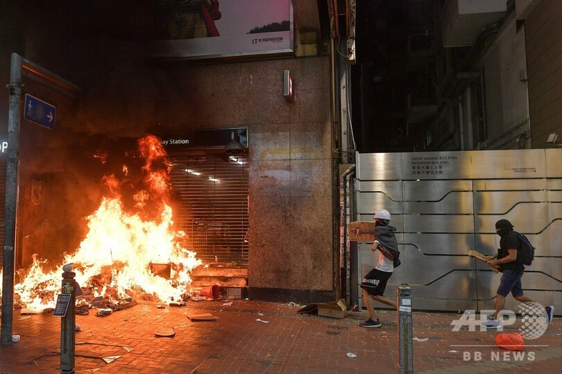 市内ではその後、衝突が夜通しで発生。デモ隊は道路にバリケードを築き、地下鉄の駅で破壊行為に及んだほか、路上に火を放ち、親中派の商店を損壊した。警察はデモ隊を解散させるため、複数の場所で催涙ガスを使用した。