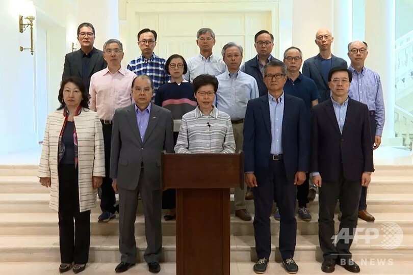 【10月5日 AFP】(写真追加)香港の林鄭月娥(キャリー・ラム、Carrie Lam)行政長官は5日、前日の夜に地下鉄の駅や商店を破壊した民主派のデモ参加者らを、騒乱が続く香港を恐怖に陥れてまひさせた「暴徒」と評して非難した。