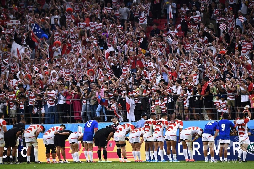 【10月5日 AFP】(更新)ラグビーW杯日本大会(Rugby World Cup 2019)は5日、プールAの試合が行われ、日本は38-19でサモアを下して3連勝を飾り、初の決勝トーナメント進出へ大きく前進した。