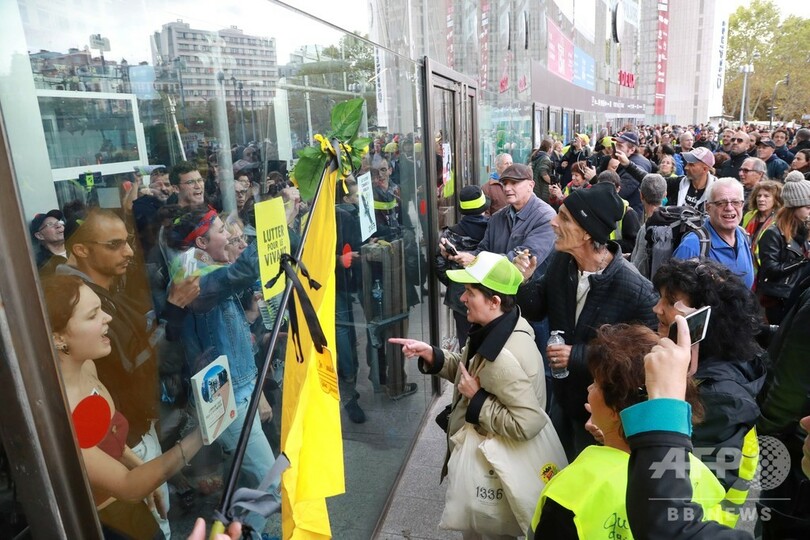 この日の占拠には「絶滅への反逆」の活動家のほか、仏政府の政策に抗議する「ジレ・ジョーヌ(黄色いベスト、gilets jaunes)」など他の運動からも参加者があった。