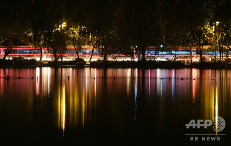 【10月9日 CNS】中国・浙江省(Zhejiang)杭州市(Hangzhou)の西湖(West Lake)で2日の夜、国慶節のライトアップが行われた。色彩豊かな光の流れに導かれ、引き返すのを忘れてしまいそうな西湖の夜景は、観光客を魅了していた。(c)CNS/JCM/AFPBB News