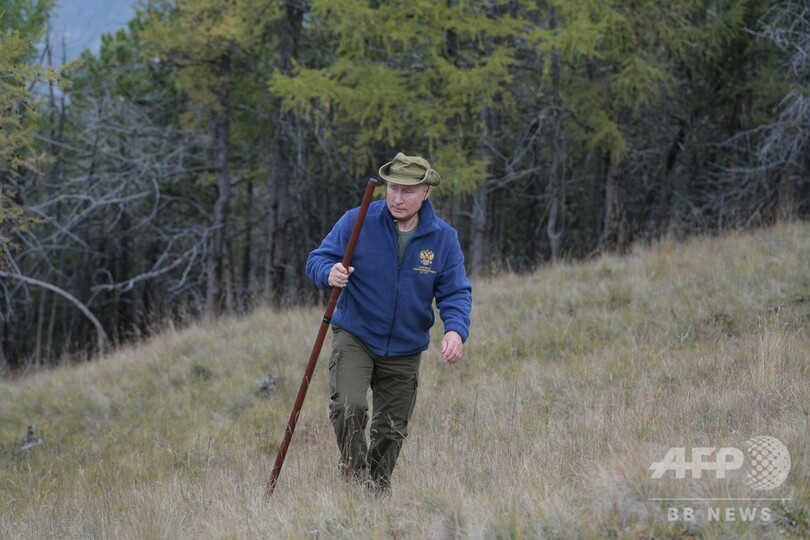 シベリア南部の自然が美しい地域で、標高2000メートルの地点を歩くプーチン氏は、息を切らしながら「雲の上まで登ってきた」と話した。