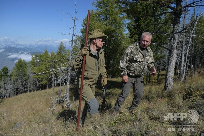 シベリア南部の自然が美しい地域で、標高2000メートルの地点を歩くプーチン氏は、息を切らしながら「雲の上まで登ってきた」と話した。