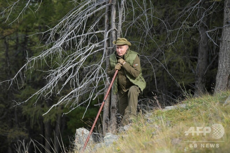 シベリア南部の自然が美しい地域で、標高2000メートルの地点を歩くプーチン氏は、息を切らしながら「雲の上まで登ってきた」と話した。