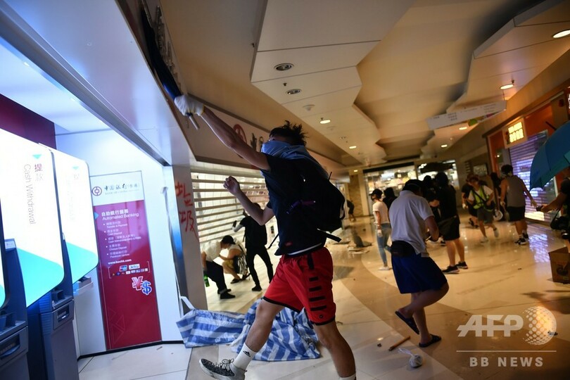 強硬派のデモ参加者らは7日夜、複数の店舗で破壊行為に及んだ上、複数の箇所で道路を閉鎖し、地下鉄の2つの駅を荒らした。警察は少なくとも3か所で催涙弾を発射したが、デモ隊との衝突は最近のものとしては時間も短く、規模も小さかった。(c)AFP/Jerome TAYLOR / Jasmine LEUNG