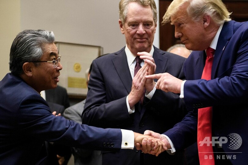 【10月8日 AFP】日米両政府が7日正式署名した貿易協定について、ドナルド・トランプ(Donald Trump)米大統領は、米農業関係者にとって記念すべき日であり、両国の経済関係がいっそう深まるとたたえた。