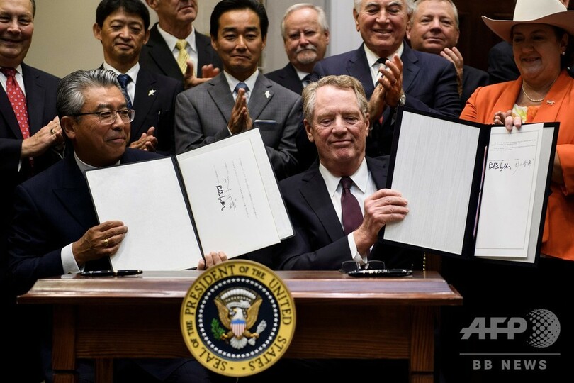 【10月8日 AFP】日米両政府が7日正式署名した貿易協定について、ドナルド・トランプ(Donald Trump)米大統領は、米農業関係者にとって記念すべき日であり、両国の経済関係がいっそう深まるとたたえた。