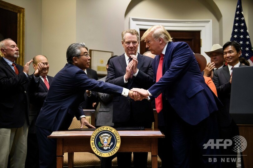【10月8日 AFP】日米両政府が7日正式署名した貿易協定について、ドナルド・トランプ(Donald Trump)米大統領は、米農業関係者にとって記念すべき日であり、両国の経済関係がいっそう深まるとたたえた。