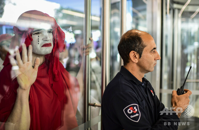 【10月21日 AFP】気候変動対策を求める活動家団体「絶滅への反逆(Extinction Rebellion)」の呼び掛けに応じ、アルゼンチン、ブエノスアイレスにある農薬大手バイエル(Bayer-Monsanto)の社屋前で行われたデモの参加者。