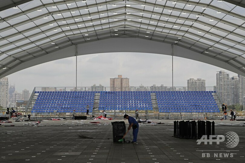 【10月10日 CNS】9日に上海世博慶典広場を訪れると、多くの作業員がセットアップされた机や椅子を撤去していた。スポンサーの展示品も同時に撤去されており、清掃もされていた。——同日午後、上海のリッツカールトンホテル(Ritz-Carlton Hotel)で予定されていた「2019NBAチャイナゲームス」の記者会見は中止になった。会場外に張られていたNBAの巨大ポスターも撤去中だった。