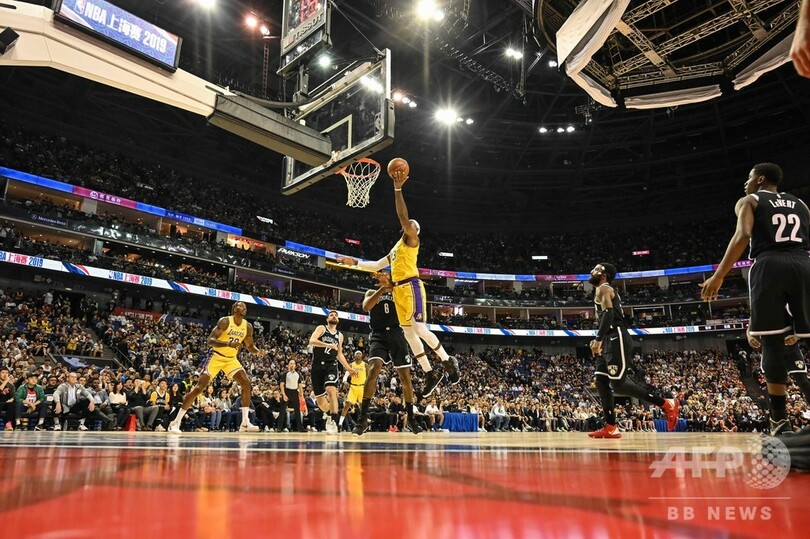 【10月11日 AFP】中国・上海で10日、米プロバスケットボール(NBA)のロサンゼルス・レイカーズ(Los Angeles Lakers)対ブルックリン・ネッツ(Brooklyn Nets)のプレシーズンマッチが行われた。