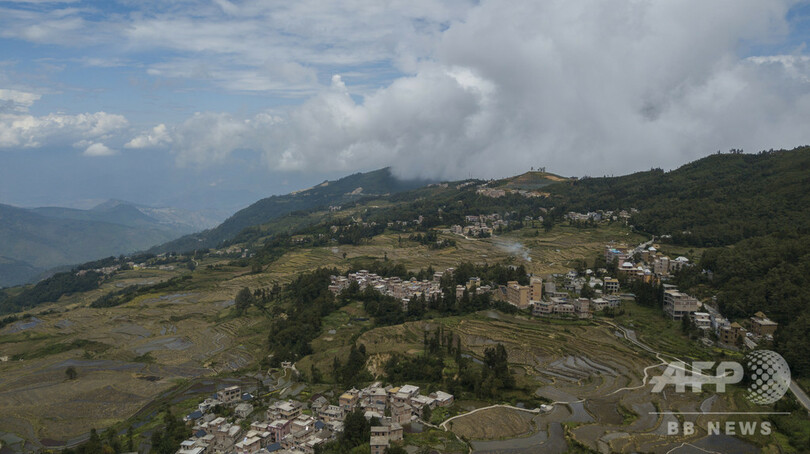 【10月14日 CNS】中国・雲南省(Yunnan)紅河ハニ族イ族自治州(Honghe Hani and Yi Autonomous Prefecture)元陽県(Yuanyang)で4日、少数民族ハニ族の棚田を空撮した。棚田は紅河近くの哀牢山(Ailaoshan)南部に位置し、古くからここで暮らしてきたハニ族の農民たちが何代にもわたり山肌を耕し、独自のかんがい技術や農法によってつくり上げた。(c)CNS/JCM/AFPBB News