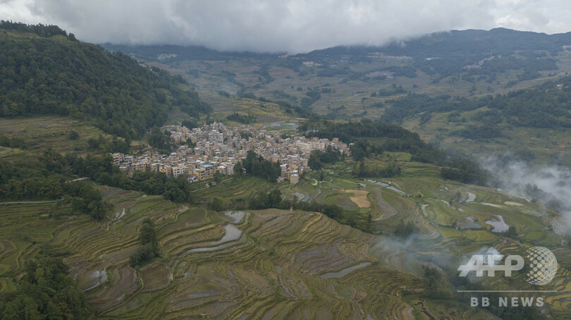 【10月14日 CNS】中国・雲南省(Yunnan)紅河ハニ族イ族自治州(Honghe Hani and Yi Autonomous Prefecture)元陽県(Yuanyang)で4日、少数民族ハニ族の棚田を空撮した。棚田は紅河近くの哀牢山(Ailaoshan)南部に位置し、古くからここで暮らしてきたハニ族の農民たちが何代にもわたり山肌を耕し、独自のかんがい技術や農法によってつくり上げた。(c)CNS/JCM/AFPBB News