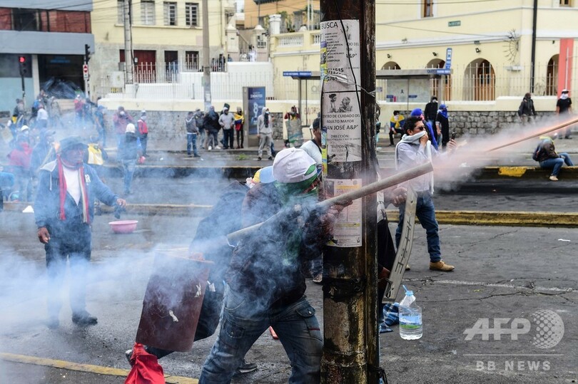 【10月12日 AFP】エクアドルで続く燃料価格の高騰に抗議するデモを主導する先住民団体は11日、デモの終結に向けて直接対話を求めたレニン・モレノ(Lenin Moreno)大統領の提案を拒否した。デモ隊と治安部隊との衝突で、これまでに5人の死者が出ている。