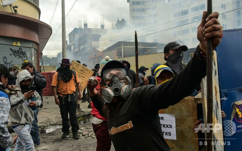 【10月12日 AFP】エクアドルで続く燃料価格の高騰に抗議するデモを主導する先住民団体は11日、デモの終結に向けて直接対話を求めたレニン・モレノ(Lenin Moreno)大統領の提案を拒否した。デモ隊と治安部隊との衝突で、これまでに5人の死者が出ている。