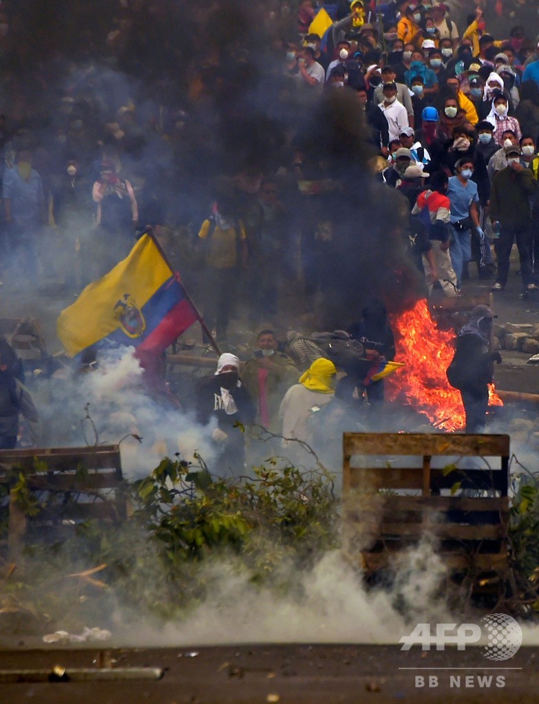 【10月12日 AFP】エクアドルで続く燃料価格の高騰に抗議するデモを主導する先住民団体は11日、デモの終結に向けて直接対話を求めたレニン・モレノ(Lenin Moreno)大統領の提案を拒否した。デモ隊と治安部隊との衝突で、これまでに5人の死者が出ている。