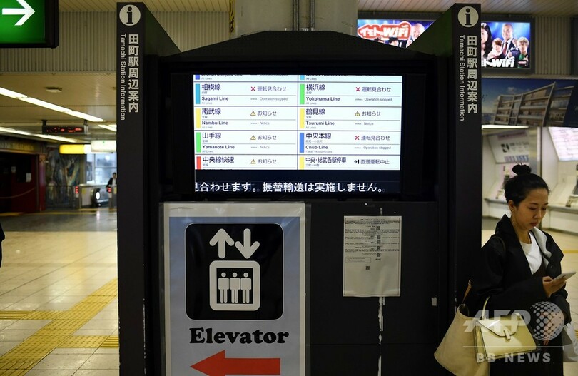 首都東京でも台風の影響が出始めており、いつもは混雑する都心部の繁華街も人影がまばらな状態となっている。(c)AFP