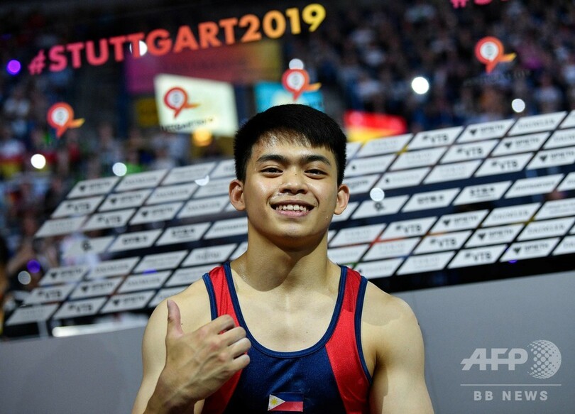 男子ゆかはフィリピンの19歳、カルロス・ユーロ(Carlos Edriel Yulo)が優勝し、前回の銅を上回った。アルテム・ドルゴピャト(Artem Dolgopyat、イスラエル)が銀、肖若騰(Xiao Ruoteng、中国)が銅メダルを獲得した一方、個人総合王者のニキータ・ナゴルニ(Nikita Nagornyy、ロシア)は0.3点のペナルティーを科されて6位に終わり、今大会3個目の金はならなかった。(c)AFP/Ryland JAMES