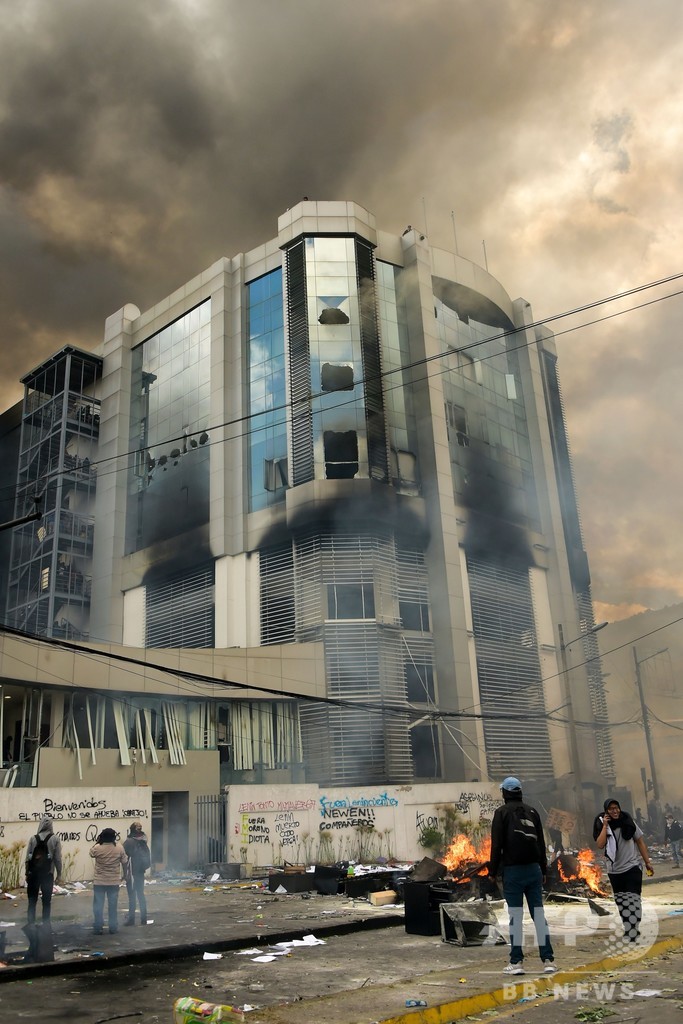 デモ隊は12日、会計検査院長の事務所が入っている建物を略奪して放火。建物に火炎瓶が投げつけられ、濃い煙に包まれた。地元メディアによると、テレビ局と新聞社も襲撃された。