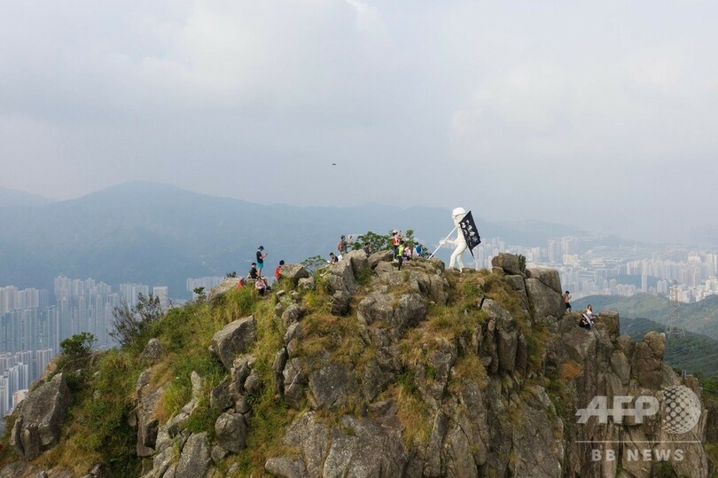 【10月13日 AFP】香港の民主派活動家らは13日朝、観光名所の獅子山(ライオンロック、Lion Rock)に「香港民主女神」像を運び込み、その頂上を女神像が「永遠に座する」場所と宣言した。