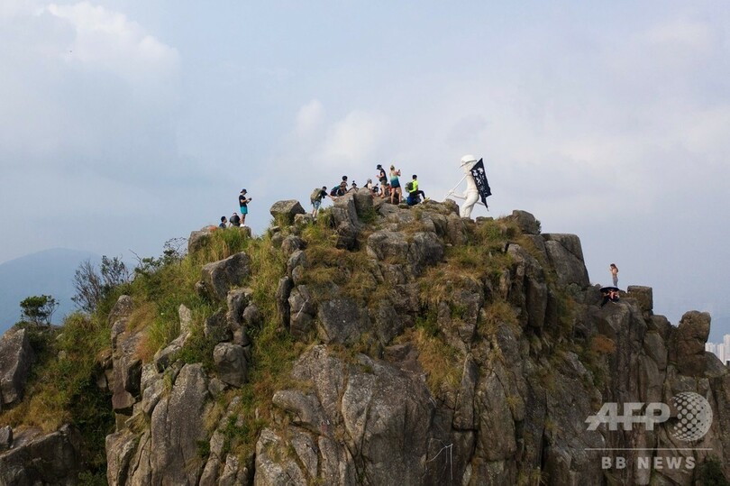 【10月13日 AFP】香港の民主派活動家らは13日朝、観光名所の獅子山(ライオンロック、Lion Rock)に「香港民主女神」像を運び込み、その頂上を女神像が「永遠に座する」場所と宣言した。
