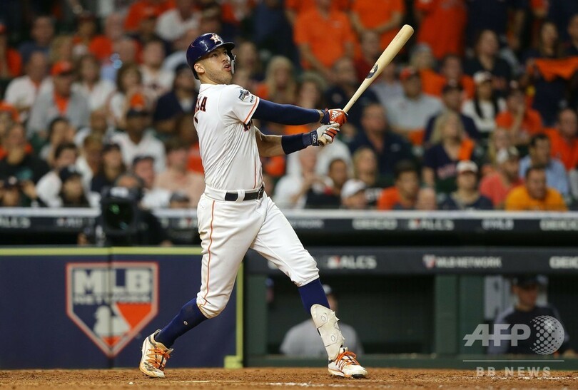 【10月14日 AFP】19MLBは13日、プレーオフのア・リーグ優勝決定シリーズ(7回戦制)が行われ、ヒューストン・アストロズ(Houston Astros)はカルロス・コレア(Carlos Correa)のサヨナラ本塁打で、ニューヨーク・ヤンキース(New York Yankees)との延長11回に及ぶ接戦を3-2で制し、シリーズ戦績を1勝1敗に戻した。