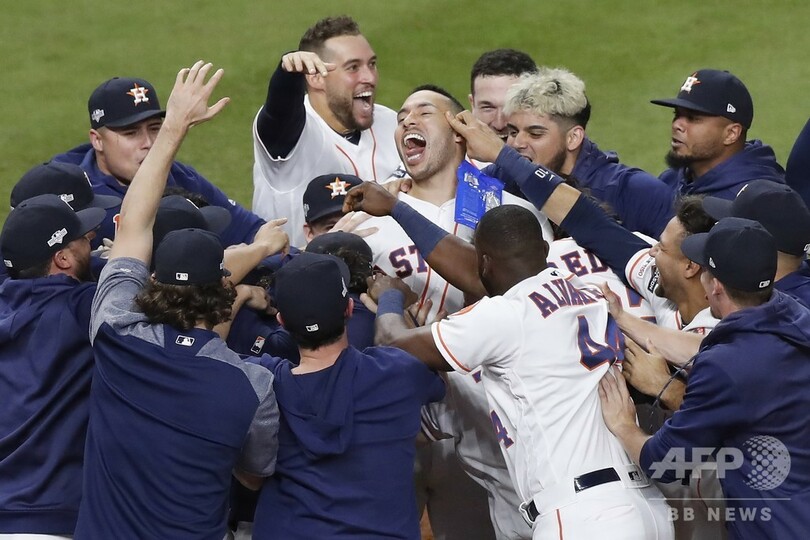 【10月14日 AFP】19MLBは13日、プレーオフのア・リーグ優勝決定シリーズ(7回戦制)が行われ、ヒューストン・アストロズ(Houston Astros)はカルロス・コレア(Carlos Correa)のサヨナラ本塁打で、ニューヨーク・ヤンキース(New York Yankees)との延長11回に及ぶ接戦を3-2で制し、シリーズ戦績を1勝1敗に戻した。