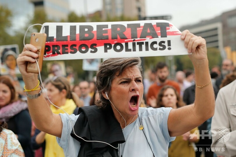 【10月15日 AFP】スペイン北東部カタルーニャ(Catalonia)自治州政府が2017年に強行し失敗した独立の試みをめぐる裁判で、同国の最高裁判所は14日、当時の州政府幹部ら9人に対し長期の禁錮刑を言い渡した。判決を受け、同自治州バルセロナでは数千人が街頭で怒りのデモを行い、空港への通行を妨害した。